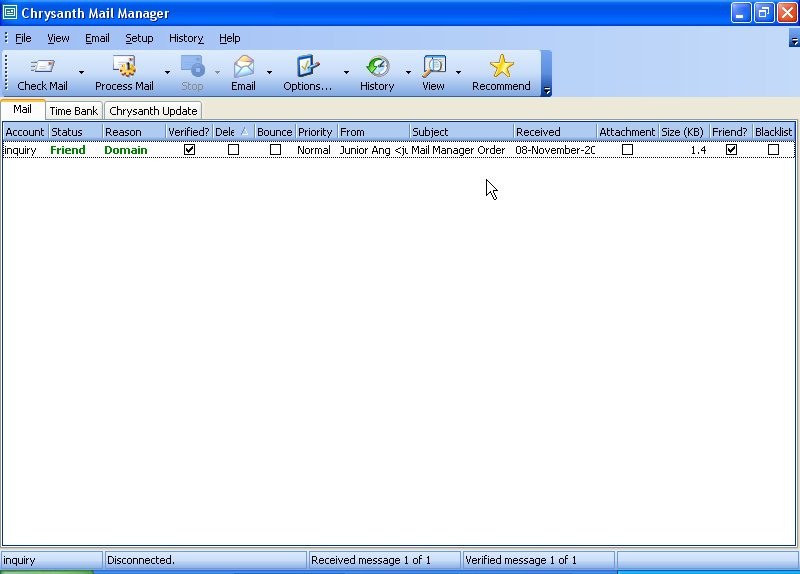 When the junk mails are taken care of, you will instantly see that your investment is easily being paid off everyday with the amount of time that you could save (which is deposited into the Time Bank by Chrysanth Mail Manager